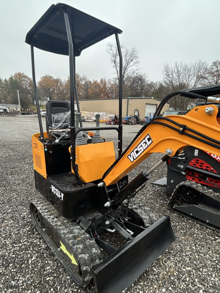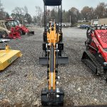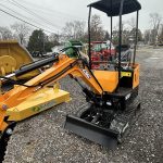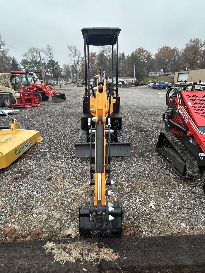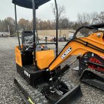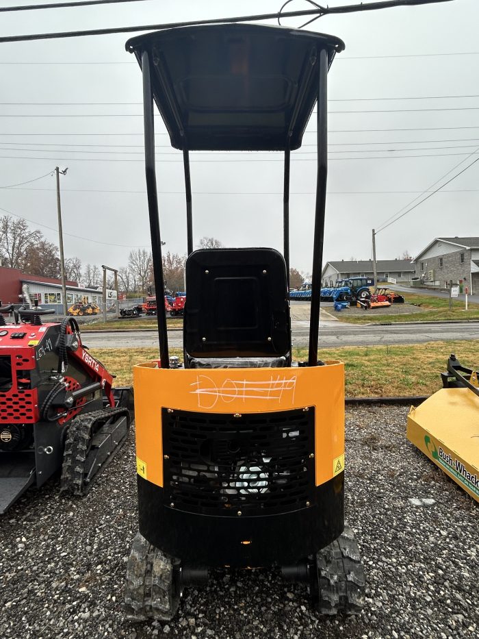 A compact mini excavator powered by a gasoline engine. It’s built for tight spaces and light-duty jobs, with 7″ rubber tracks, a 780 mm stick, and an auxiliary hydraulic circuit for attachments. It also features a digging bucket. Its max digging depth is about 2,350 mm.