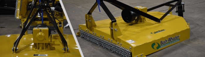 Bush-Whacker’s heavy duty single-spindle cutters are great for small areas of grass and small brush. It’s truly a great cut for your money. The Bush-Whacker units come standard with stump-jumpers and deck-rings, and when combined with 120HP gear boxes, you will be hard pressed to find a better value on the market today.
