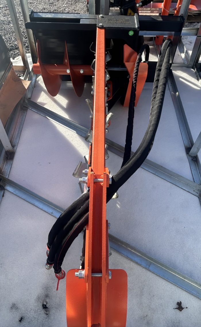 A heavy-duty trenching attachment for skid steer loaders engineered for efficient digging of utility trenches, irrigation ditches, and cable or pipe trenches. Built for commercial and construction use, this trencher mounts to standard skid steer quick-attach couplers and is ideal for landscaping, utility installation, and site preparation tasks.