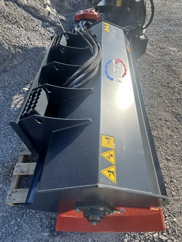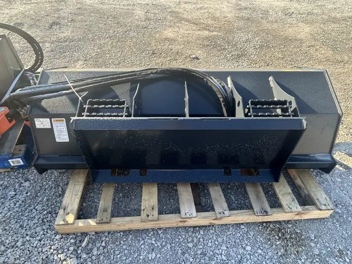 A robust hydraulic rotary tiller attachment designed for skid steer loaders, ideal for soil preparation, seedbed conditioning, and land cultivation.