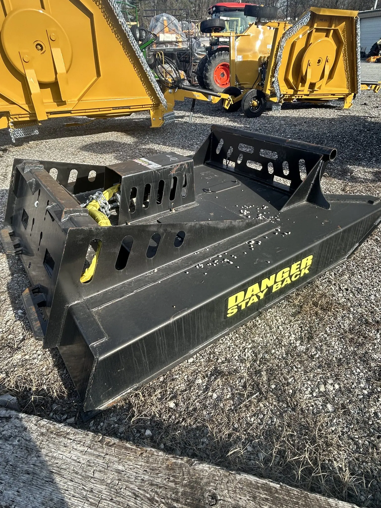 A heavy-duty skid steer brush cutter attachment designed for land clearing and vegetation management. The 70″ cutting width handles thi... Read More