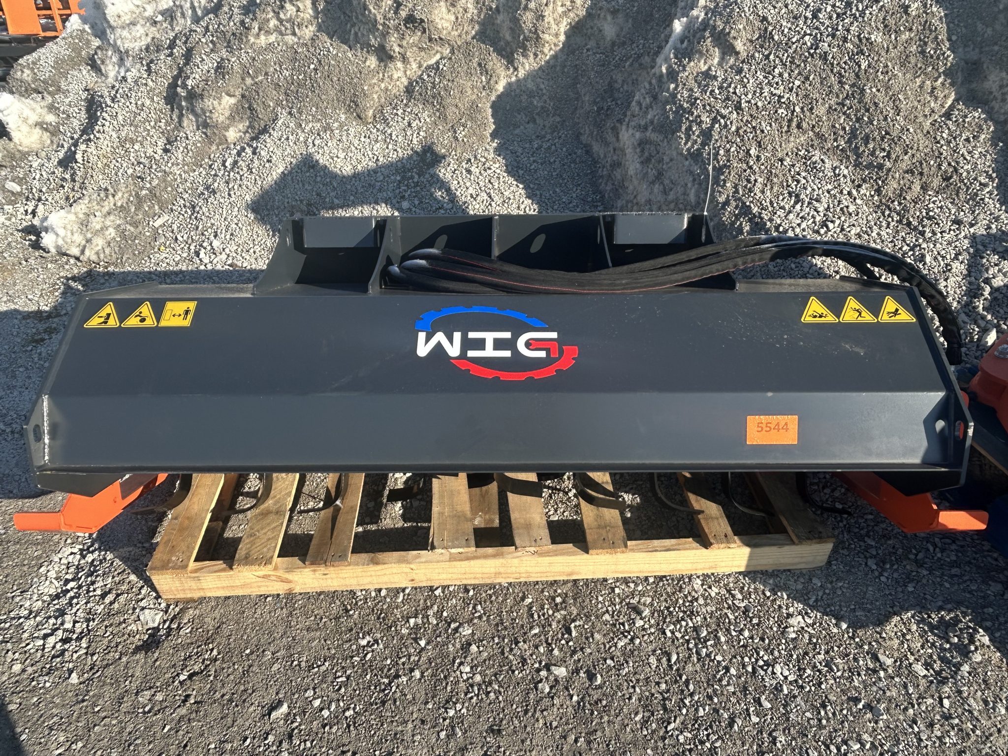 A hydraulic skid steer mower attachment designed for effective cutting of grass, brush, and overgrown vegetation.