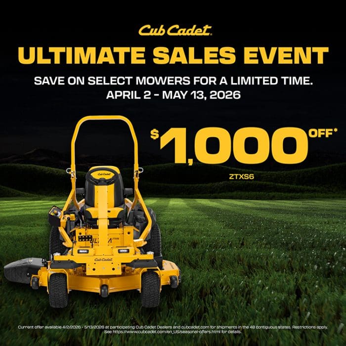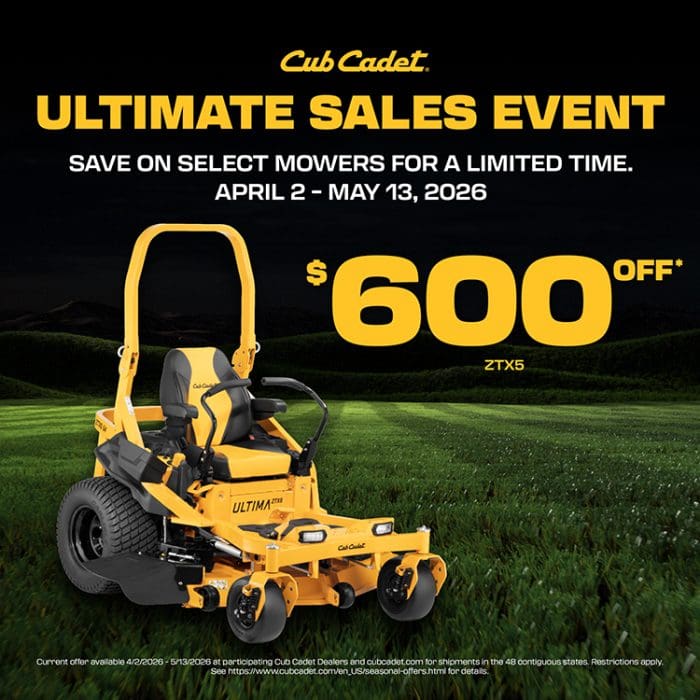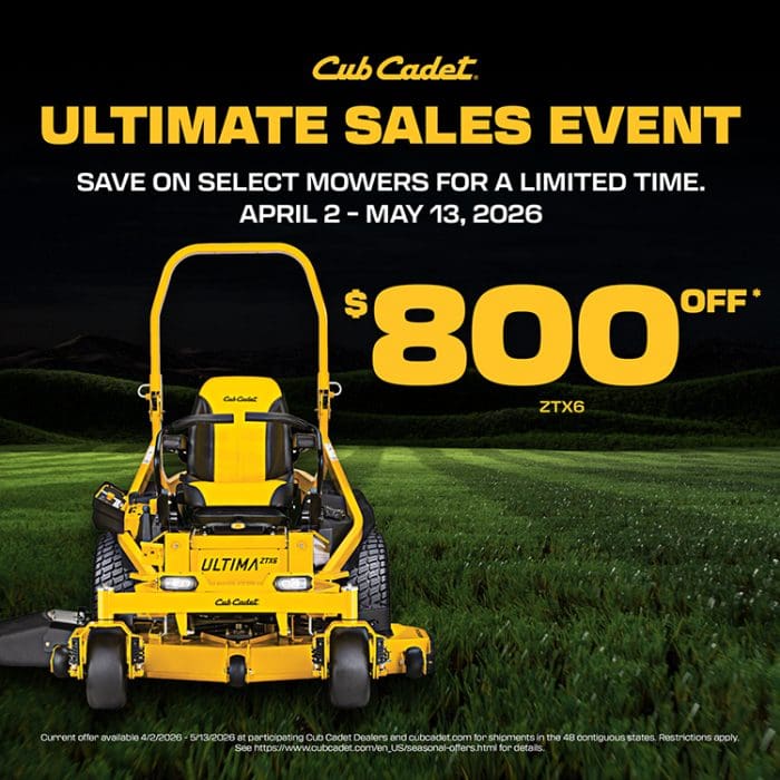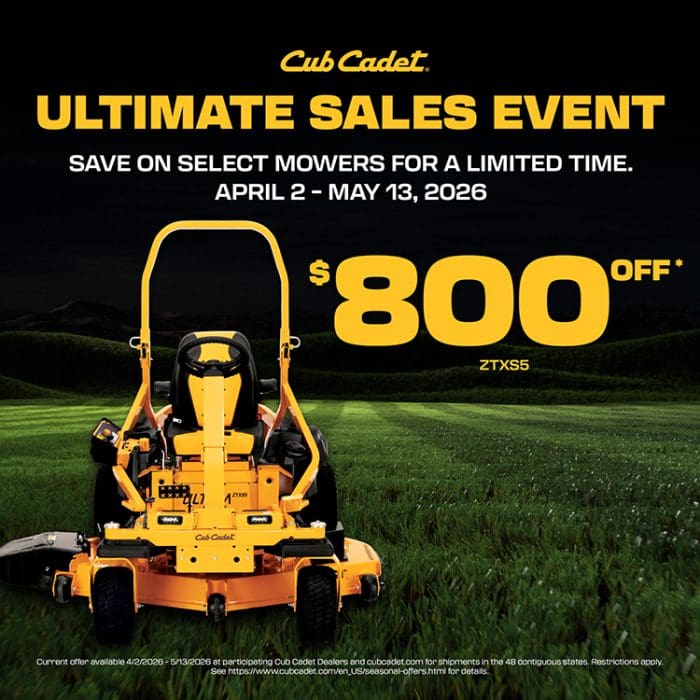 The Cub Cadet Ultimate Sales Event is ON now through May 13th and these savings are HUGE! 💰