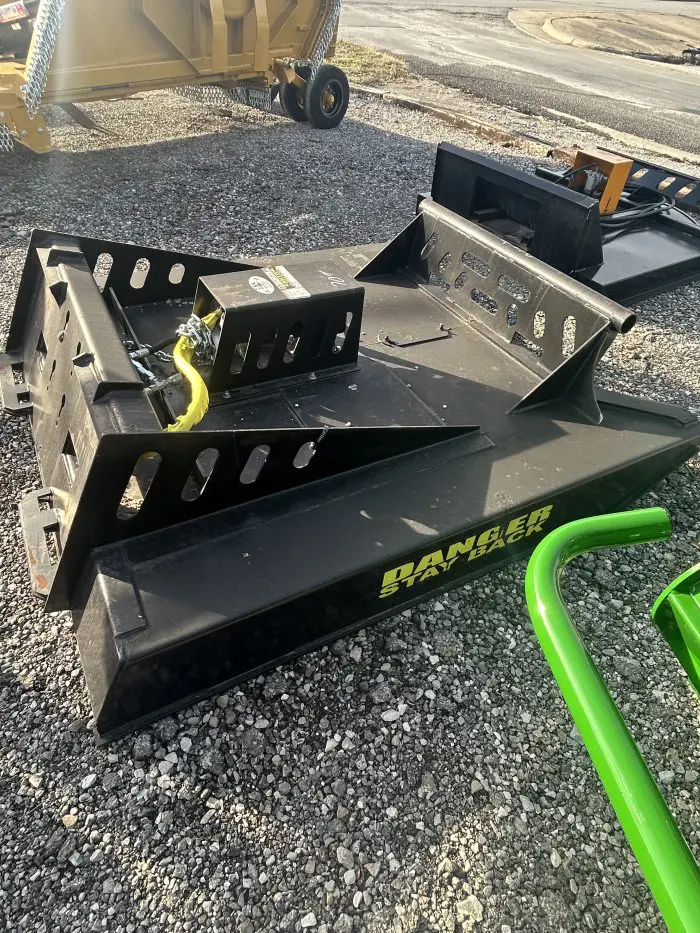 A heavy-duty skid steer brush cutter attachment designed for land clearing and vegetation management. The 70″ cutting width handles thick brush, weeds, and small saplings, mounting easily to standard skid steer quick-attach systems. Built with rugged steel construction and hydraulic drive, it’s ideal for acreage maintenance, trail clearing, and site prep on properties, farms, and commercial jobs.